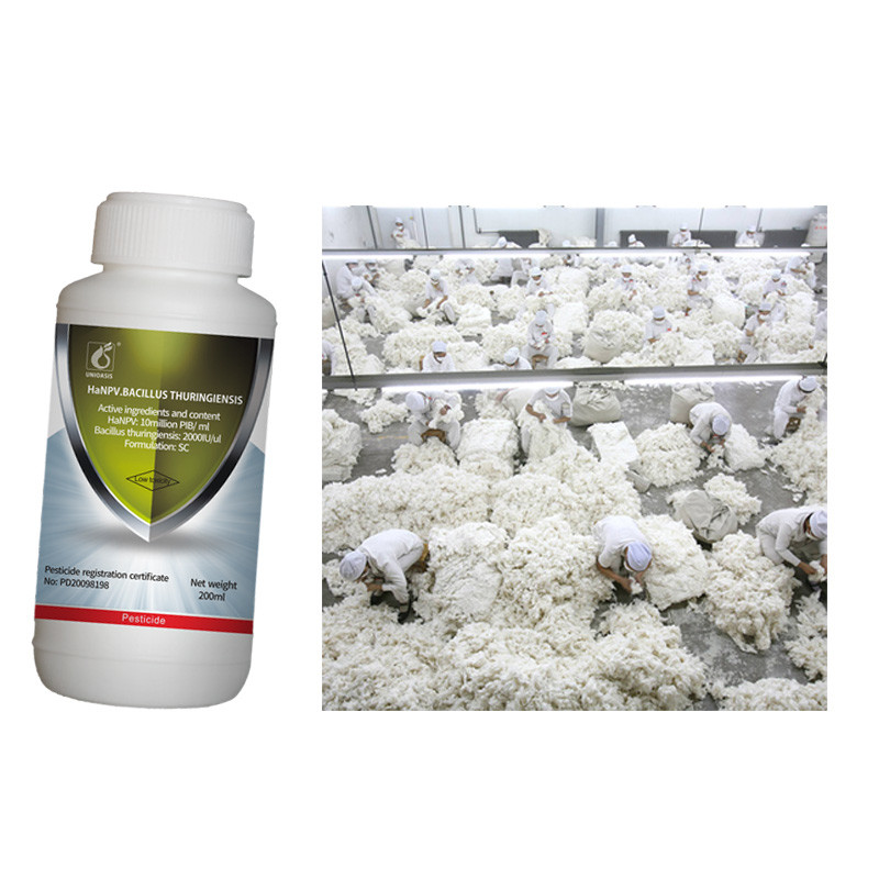 ヘリコベラ・アルミゲラ核多面体病ウイルス(HaNPV)は、綿のヘリコベラ・アルミゲラを殺す微生物です。作物に散布され、害虫に食べられると、ウイルス粒子は害虫の体内で複製、増殖し、害虫のすべての部分に急速に広がります。体の部分は劇的に飲み込まれて虫の組織を消費し、害虫は「病気」の期間中は食べたり動いたりせず、亜致死効果を引き起こし、最終的に全身が水によって殺されます。昆虫に散布すると、孵化する幼虫は卵殻を食べた後にウイルスを食べて死にます。さらに、ウイルス粒子は、死んだ昆虫の体液や糞便を通じて、まるで「疫病」のように次世代や他の害虫に伝播し続けることができるため、畑の害虫を長期間にわたって効果的に制御できます。