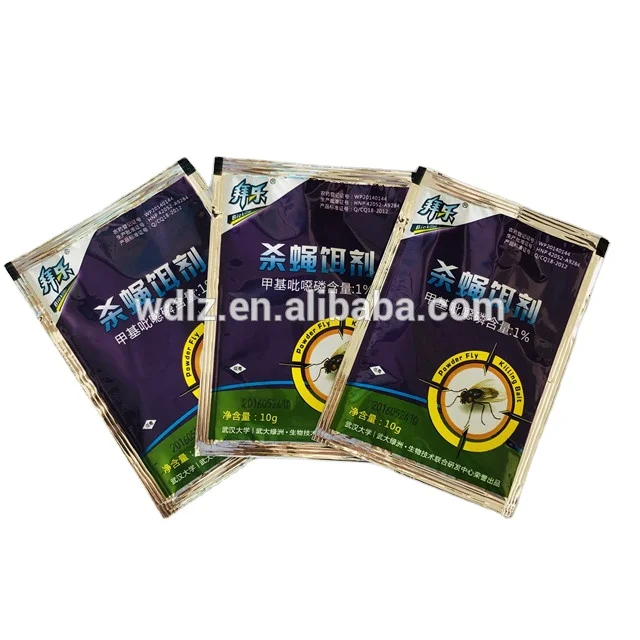 Contains fly attractant to attract feeding. Flies cause stomach poison death through feeding and contacting the poison.